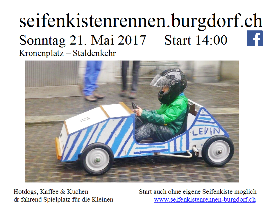 Die Plakate sind auch auf unserer Facebook Seite zu finden, so dass Du sie mit Freunden teilen kannst: http://facebook.com/seifenkistenrennenburgdorf